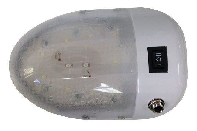 This 12V LED oval light is commonly used in Jayco Campers. It has a Power Jack built in for connecting 12V appliances with a 1/4 Inch (6.4mm) jack.