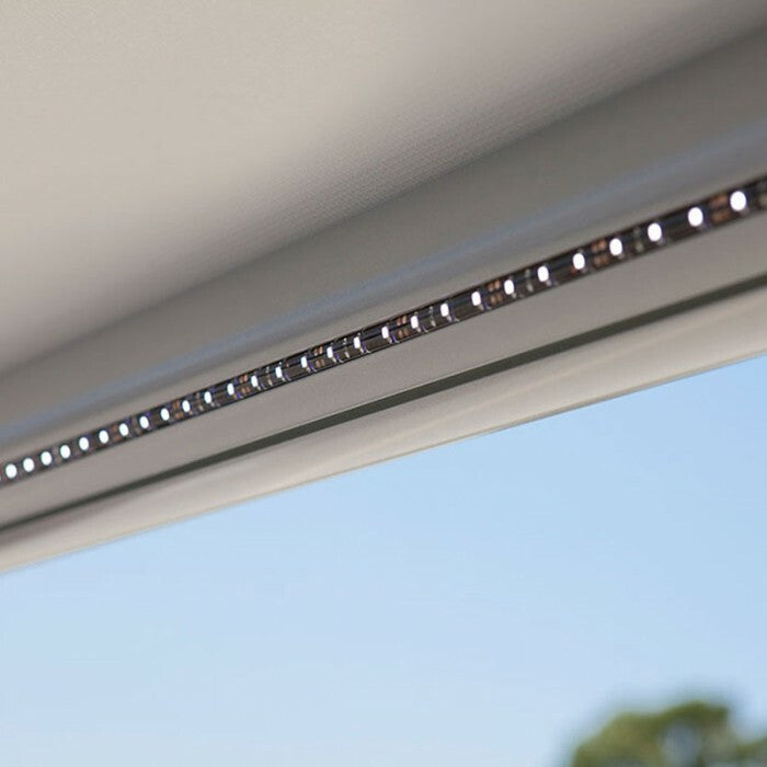 Light up your outdoor activities with this 13ft Silver Shale Carefree LED Awning from Carefree of Colorado. This special version features built-in LED lighting for bright light with adjustable intensity and is energy efficient for a more sustainable camping experience. Suitable for pop-tops, caravans, and motorhomes, the Fiesta Awning is also designed to accept a range of accessories for customizable living spaces. Enjoy time outdoors with reliable comfort and style.