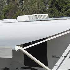 Gather the whole family and take the party outside with this 13ft Carefree LED Silver Shale Awning! Setting up is a cinch - just unlock the travel lock, pull the spring-loaded awning roller out, and extend the legs and roof braces for a taut and secure fit. Secure to your RV or peg to the ground for ultimate convenience!