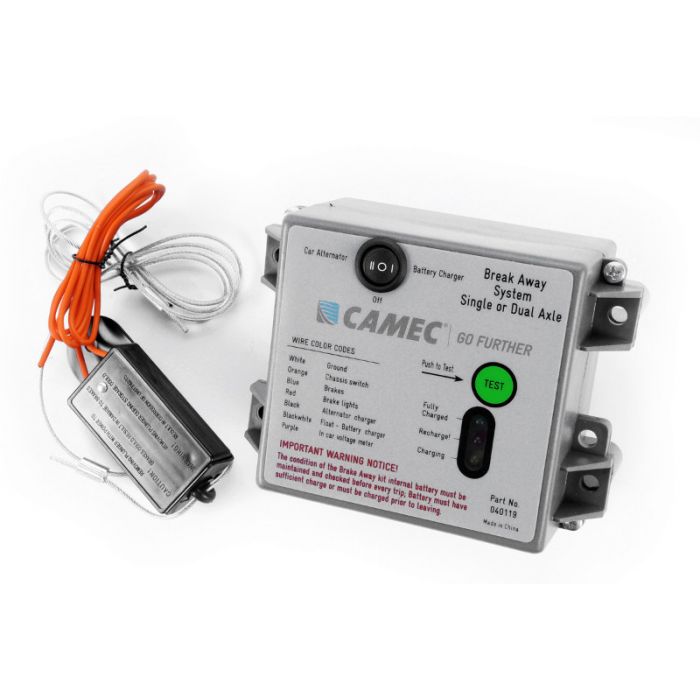 The Camec Remote Battery Monitor is used in conjunction with the Camec Breakaway System, it delivers a Visual and Audible warning to the driver if the battery charge in the Camec Breakaway System falls to sucha level that if the system is engaged it is incapable of maintaining brake actuation for at least 15 minutes.