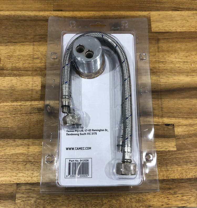 - Supplied with flexible hoses. Hose input is 1/2 inch male BSP thread