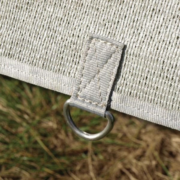 - Reinforced tabs across the bottom edge hold stainless steel D-rings for securing to the ground
