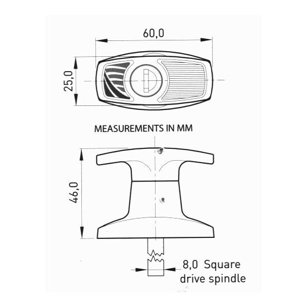 CAMEC T-handle suits popular caravans such as Jayco. This replacement housing accommodates CAMECs 'One-Key Fits All' barrel eliminating the need to have a different key for every lock.
