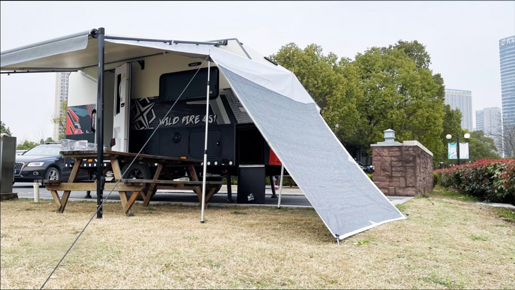 This Caravan Awning Porch Extension is ideal for expanding your living area while camping. Made with a heavy duty vinyl roof designed to withstand most weather conditions, it's perfect for cooking on a BBQ or just kicking back and relaxing. Enjoy a worry-free outdoor experience!