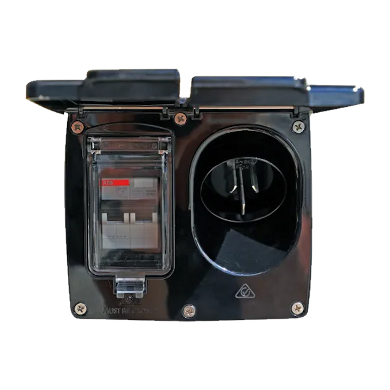 A standard set-up would include the CMS power inlet that accepts 240V power into your RV via a 15amp extension lead. A CMS circuit breaker has a loom that connects to the power inlet then off to the first power point. A second cable then also connects to the rear of the first power point and heads off to the next power point. This continues around the RV.