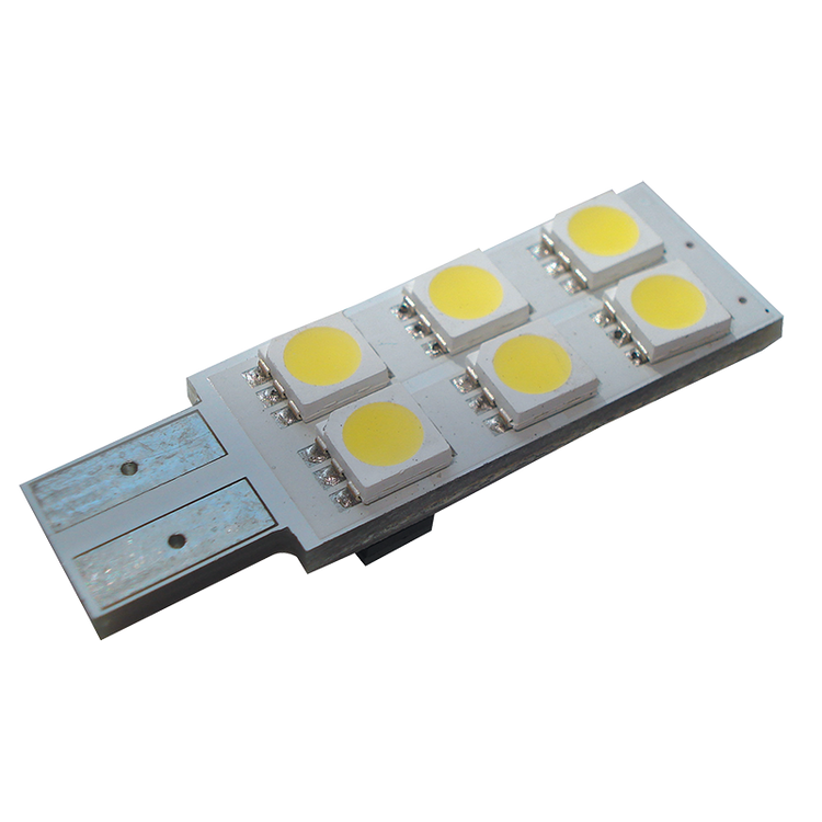 Lighten up your van with the latest LED low wattage replacement bulbs. Used to replace reading light bulb, it has 6x super bright LED's and a luminous flux of 105 lumens. Operating on 12V DC, it is the equivalent to a 13.5W T10 halogen bulb.