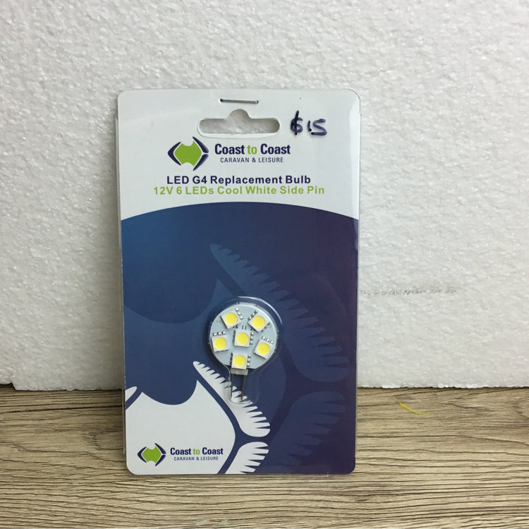 LED G4 bulb, 6 LEDs, 12v, 1.6 watt. LED bulb that will replace many existing G4 globes.