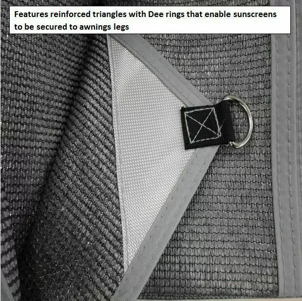 There are also newly added reinforcing triangles (with D-rings) that enable the sunscreen to be secured to awning legs