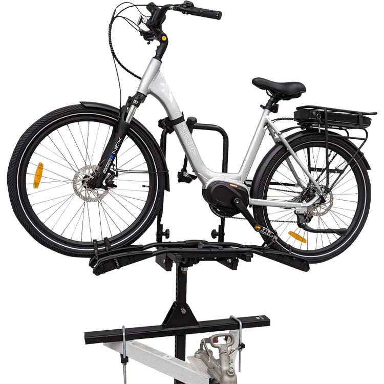 The raised tow-ball mount is compatible with most tow-ball mounted accessories such as bike and luggage racks or even more premium options like Coast Quick-fit bike racks. Its steel construction means it is e-bike friendly and can handle up to 60kg. The Travel Rack Pro’s raised mounting mast allows additional items to be placed underneath it, such as gas bottles, toolboxes, jerry can holders and other small items. This means that you can carry more items on your trips without having to sacrifice space inside the caravan.