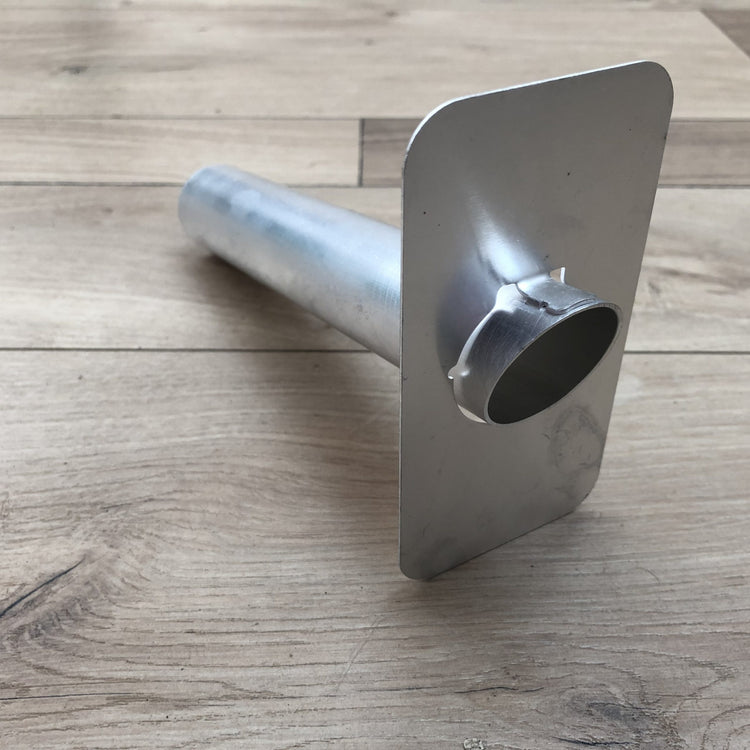 Dometic Aluminium flue tube, Suits A1625 & AS1625 vent Kit. - These fit between the Dometic upper vent and the Black T piece on the Fridge flue. The plate is bent to the correct angle during installation. The tube can be trimmed if too long.