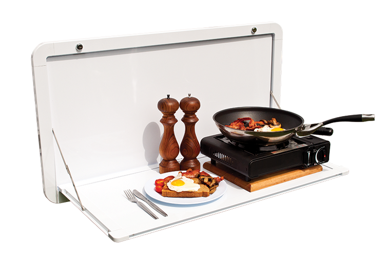 The LIFESTYLETABLE™ is a low profile folding table that is easily attached to the side of your caravan or RV, without cutting a large hole into your exterior wall. Australian designed and manufactured with quality stainless steel, aluminium extrusion and die-cast aluminium corners. The sturdy construction allows for a maximum weight allowance of 25kg.