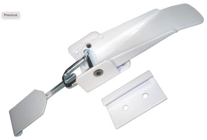 Camper style toggle Clamp, White. Comes with the clamp and small bracket that gets screwed to the roof.