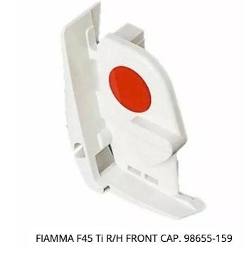 Right front cap, Polar White, 05484A01 suit Fiamma F45 Ti 2.5m - 4.0m The end cap fixes to the leg knuckle and slides into the front of the awning, it is removed by loosening the small nut.