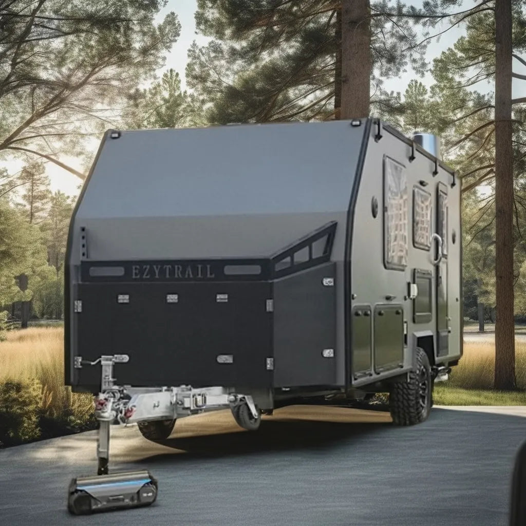 The All Terrain Remote Control Jockey Wheel 2500kg is a heavy duty motorised mover suitable for challenging scenarios with small to medium size trailers.