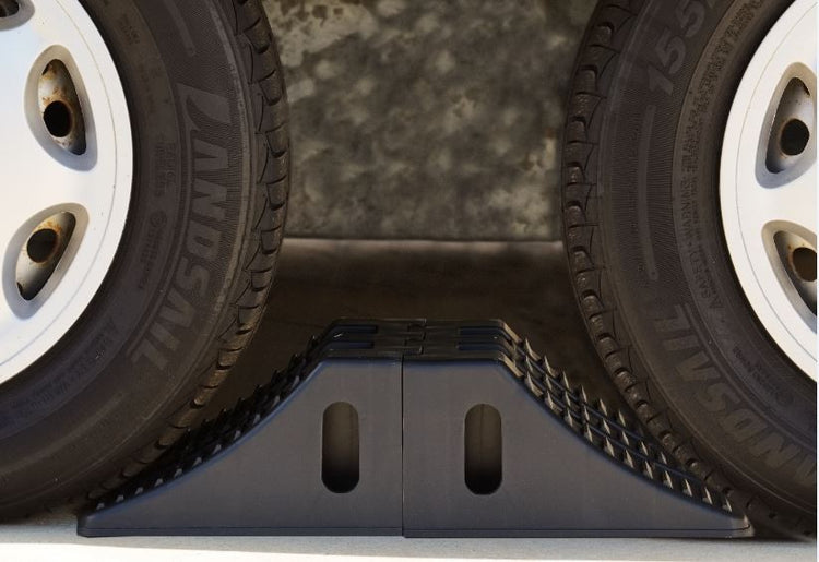 Don't have your precious RV or camper trailer get away on you! Instead, be equipped with a pair of interlocking poly wheel chocks to be used in-between tandem wheel caravans or separated to suit single wheel caravans.