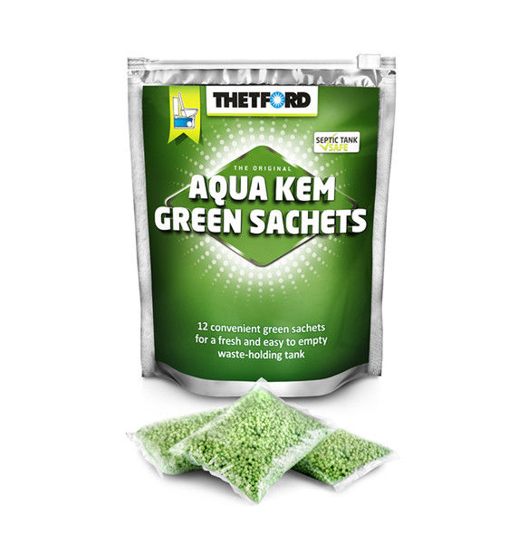 Water-soluble sachets for the waste-holding tank.