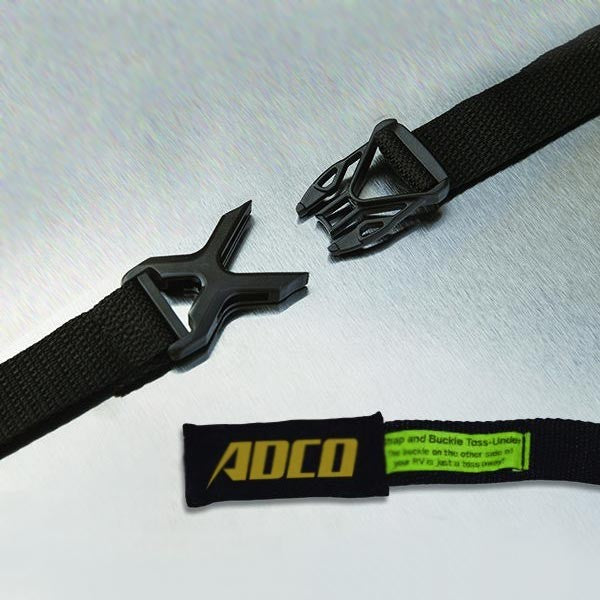 The dual front and rear cinching system removes slack and billowing, and the air vents help to eliminate moisture build-up. Extra reinforcements on all four top and bottom corners help protect against sharp edges and reduce wear. The convenient passenger-side zippered entry panel allows for easy covered access, regardless of door position. Weighted buckle toss-under straps allow you to easily toss the installation straps under your RV to connect to the opposite side. The storage bag included provides neat storage for your cover when it is not in use.