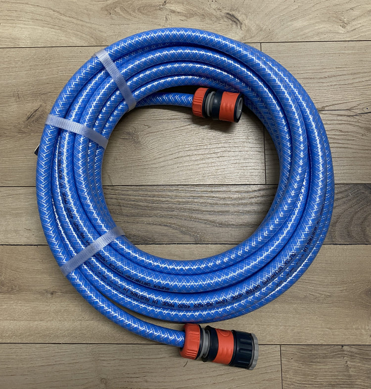 Introducing the Supex 10mt Drinking Water Hose w/ fittings. Made from FDA-approved food grade compounds, our reinforced hose is non-toxic and leaves no aftertaste. This complete kit includes clip-on fittings for easy use and can be attached to both 3/4in & 1in taps. Enjoy safe and clean water wherever you go.