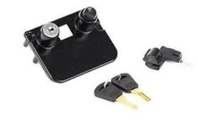 - The outer lock includes 2 keys, the metal plate shown with the button and lock barrel plus the sliding catch and spring.