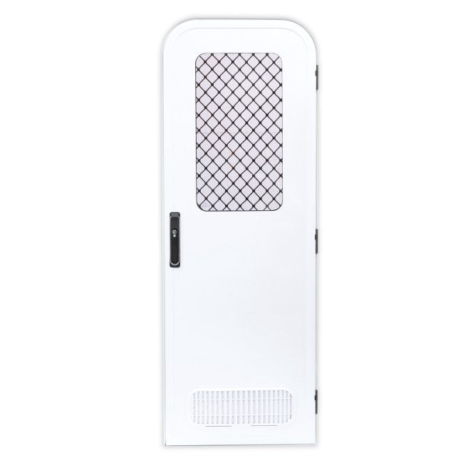 If you want to make the entrance to any RV stylish, the Camec Odyssey 2 & 4 Radius Corner door is the perfect addition. Like the Odyssey 4 Square Corner door, the Odyssey 2 & 4 Radius Corner door features a light but strong main door infill, a one piece outer door available in white & cristal silver (2RC only)with white or black frame. The Odyssey 2 & 4 Radius corner door is available in left or right hinge set up, standard 3 point lock system with an aluminium grille mesh and flyscreen security door. The stylish Odyssey style tinted single glazed acrylic panel completes the Odyssey door ranges modern look.