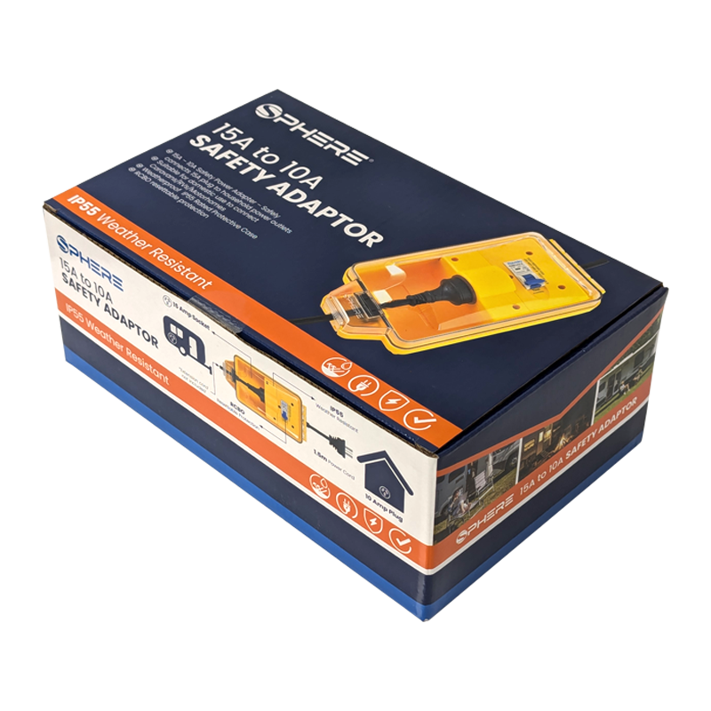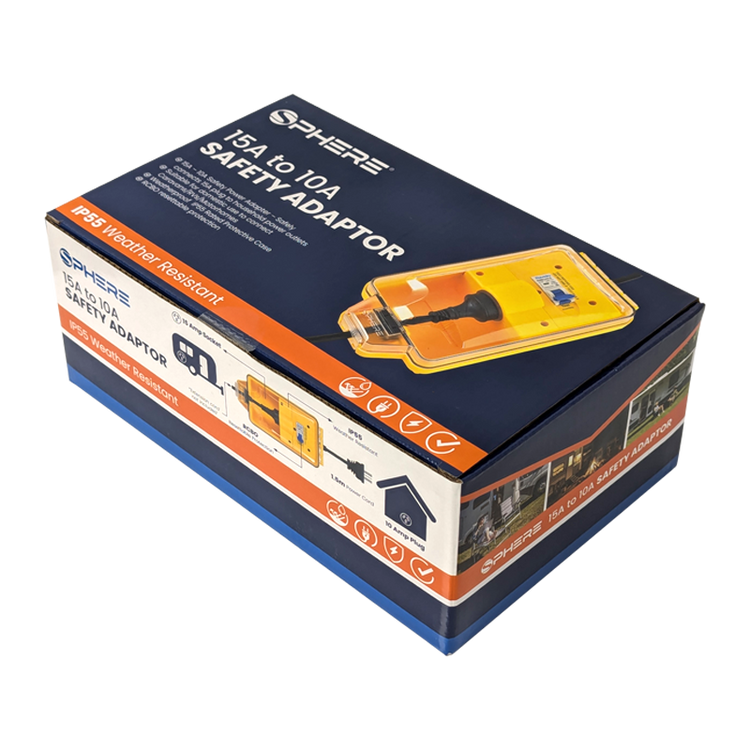 Power up your caravan or RV safely with the Sphere 15A to 10A Power Adaptor, designed for travellers who love the great outdoors. Whether you’re setting up at a caravan park or plugging into power at home, this adaptor makes it easy to connect your 15A plug to a standard 10A outlet.
