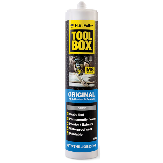 Tool Box™ Original is a high performance multi-purpose adhesive and sealant in one based on MS polymer technology. Tool Box™ Original cures to form a high strength, permanently flexible waterproof bond adhering to a wide variety of materials. It performs the function of both a high strength adhesive as well as a highly durable joint sealant. Tool Box™ Original provides a non-hazardous alternative to traditional polyurethane elastomeric adhesive/sealants and is a true ‘tool box’ in a cartridge.
