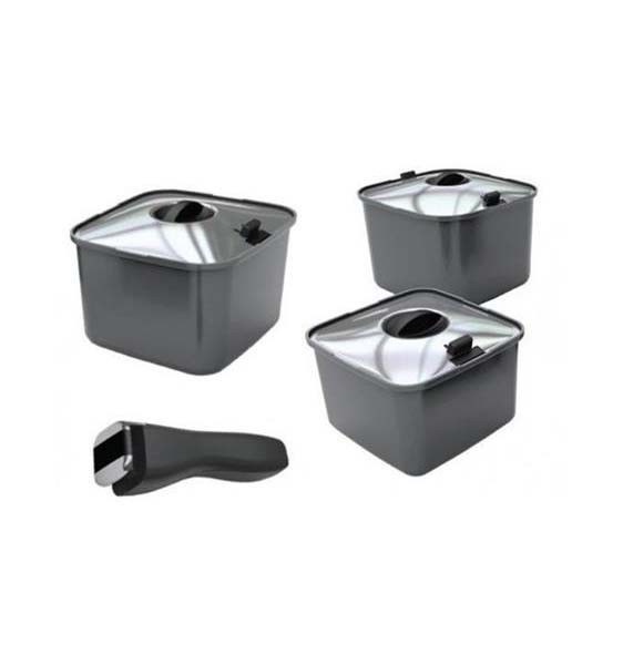 - 3 x Smartspace pots, 2.8, 1.9 & 1.4 litres (3 quarts, 2 quarts, 1.5 quarts)