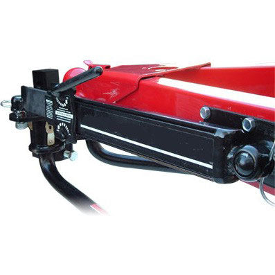 To use sway controls, they must be attached for each trip with a simple circlip thru front and rear ball mounts. The required friction is set using the handle shown and the gauge on the side. When backing the friction needs to be released when making sharp turns.