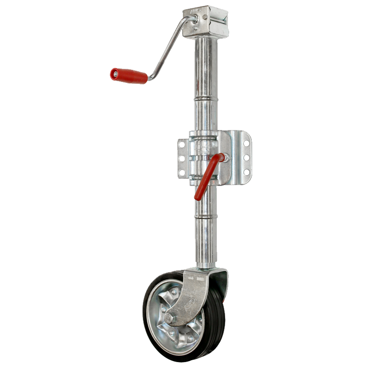 The side wind design allows unrestricted movement where conventional top wind units are obstructed by items mounted on your drawbar. The overall height of this jockey wheel with 4 clamping positions makes it suitable of a huge range of applications. The integrated gearbox provides effortless winding with a static capacity of up to 400kg.