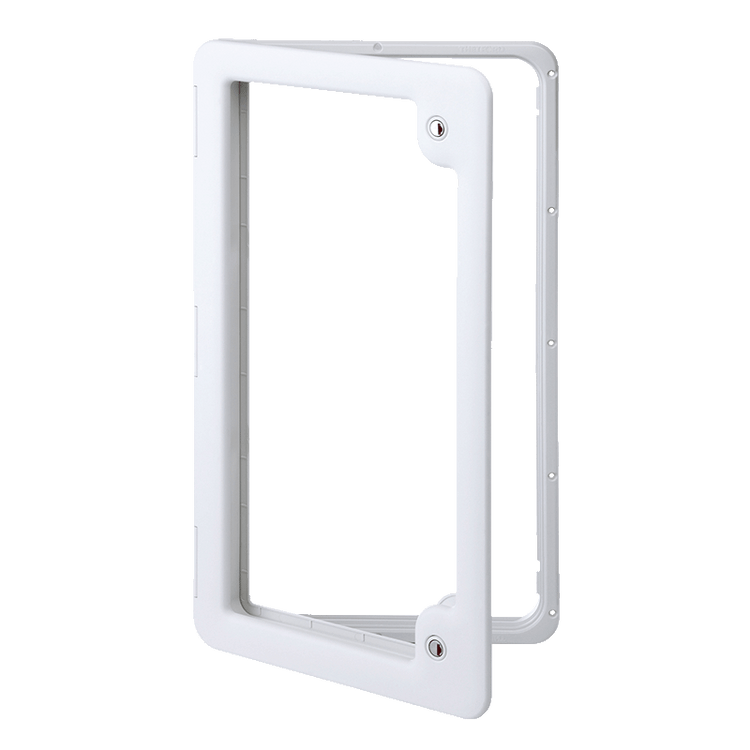 Thetford service door 4, 700 x 395mm. These are designed for gas cylinders or water tank doors. The panel cut from the outside skin is inserted within the door frame.